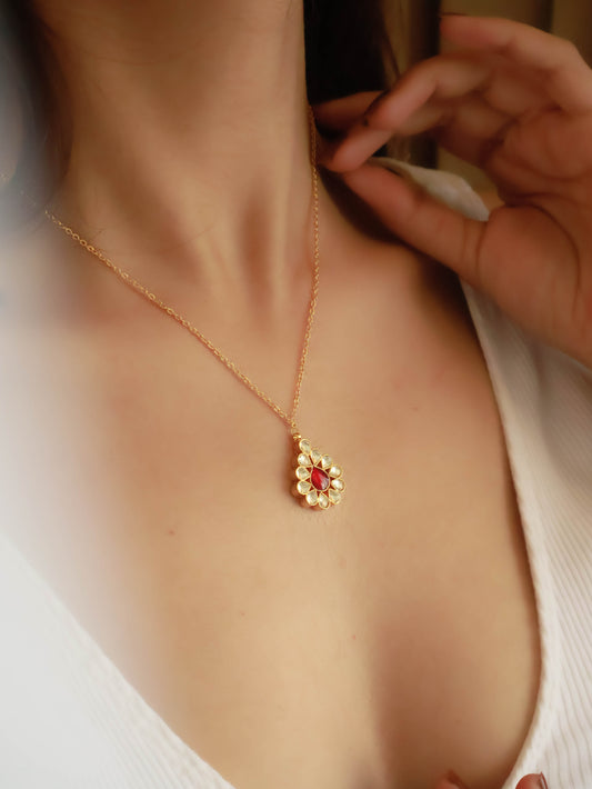 Caprice Red Kundan Pendant Necklace