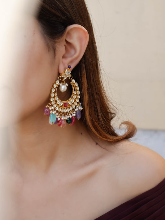 Asaara Multicolored Kundan Chaandbaali Earrings