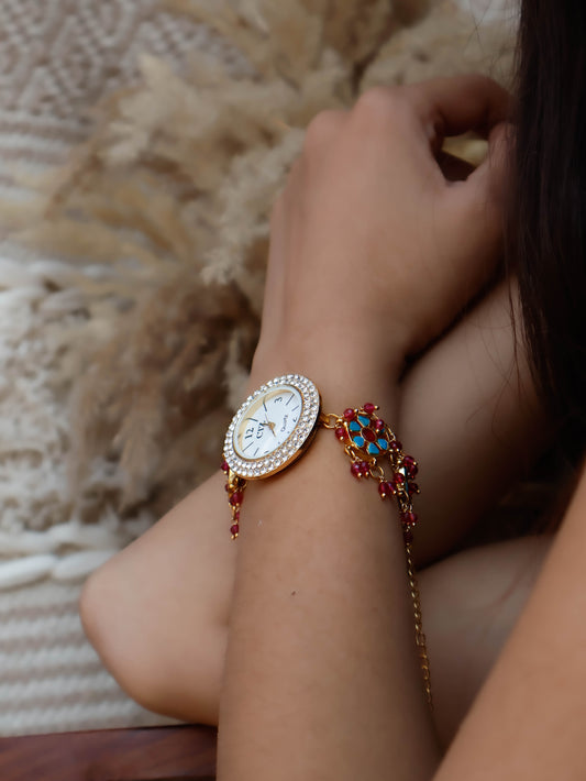 Vrinda Multicolored Kundan Wrist Watch
