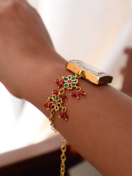 Lila Green-Red Kundan Wrist Watch