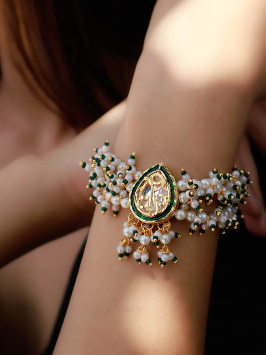 Zia Kundan and Pearl Green Bracelet