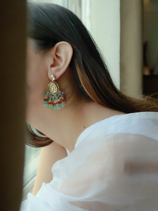 Fairat Multicolored Kundan Chaandbaali Earrings