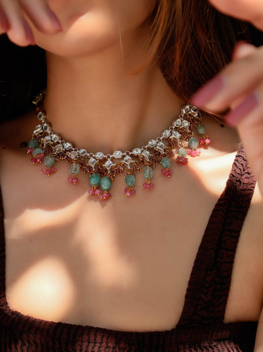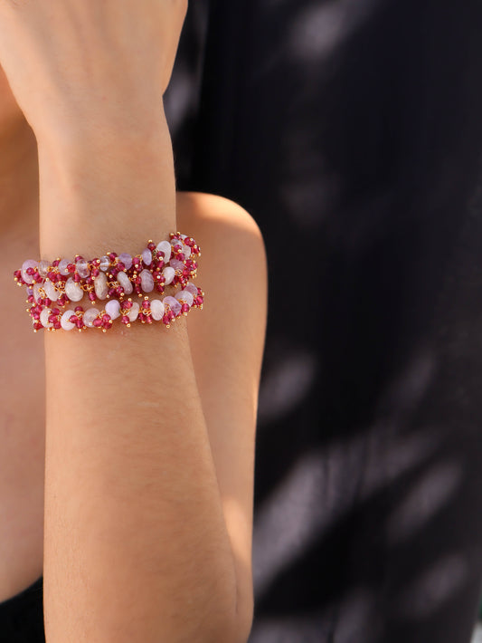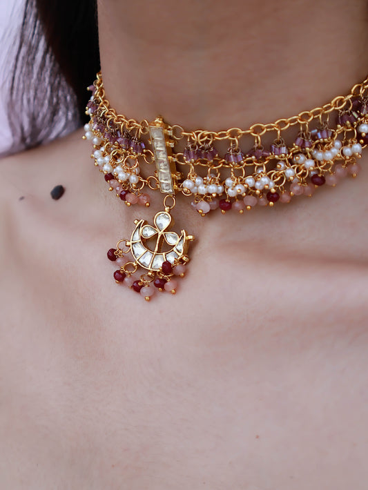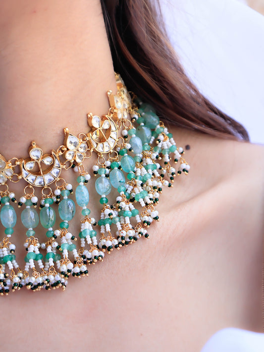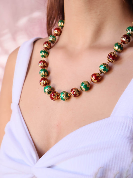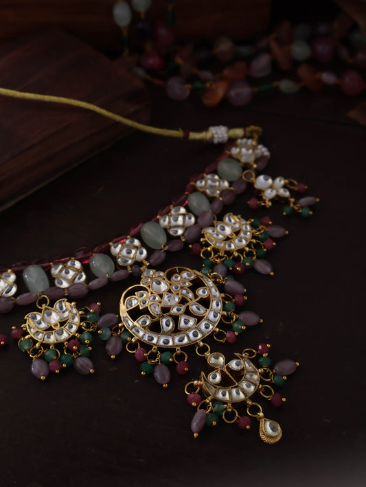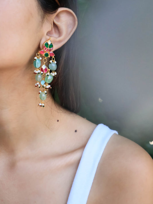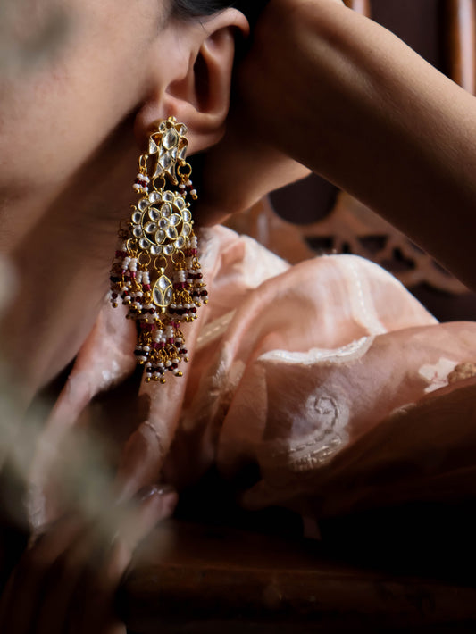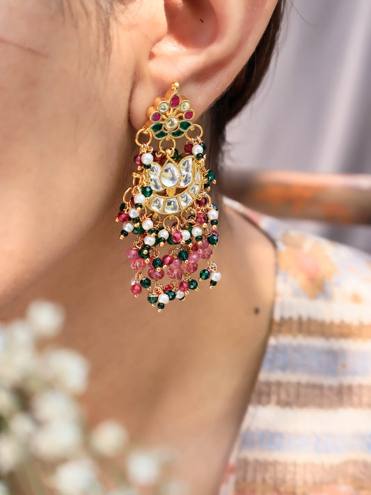 Laamia Red-Green Kundan Chaandbaali Earrings