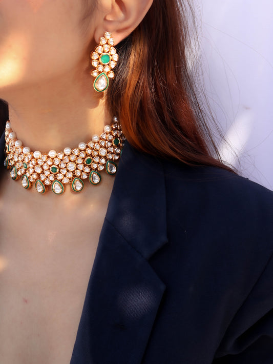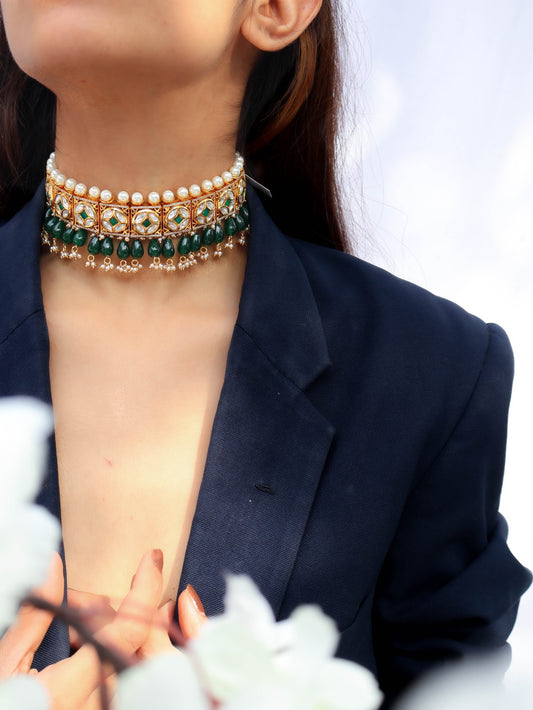 Jiva Green Kundan Choker Necklace