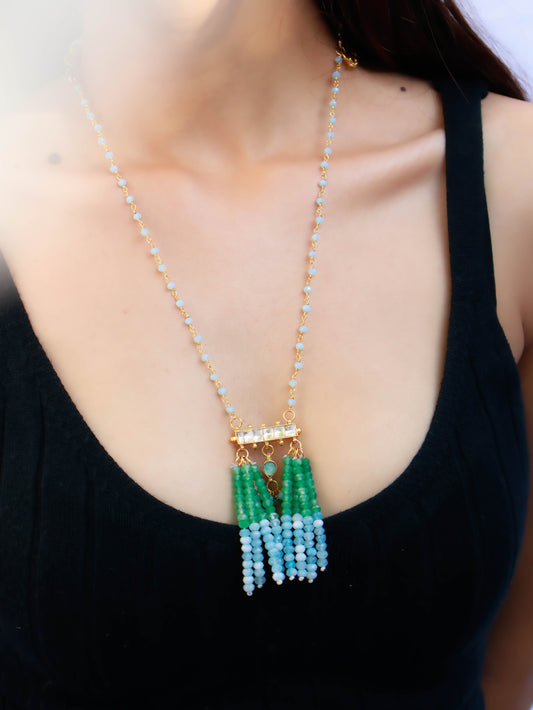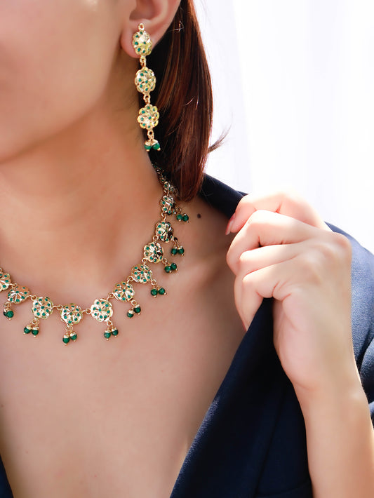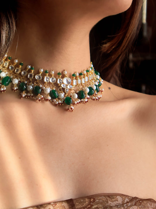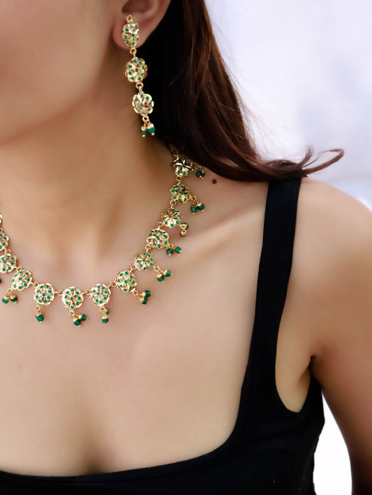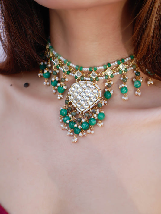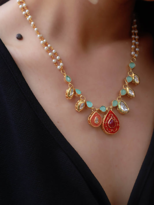Deenah Orange-Turquoise Kundan Charms Necklace
