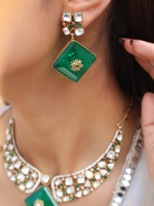 Vrish Green Polki Necklace Set