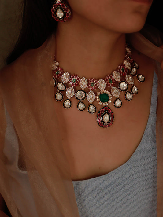 Farish Polki Red-Green Necklace Set