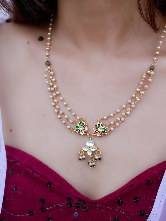 Zahra Kundan and Pearl Pendant Necklace