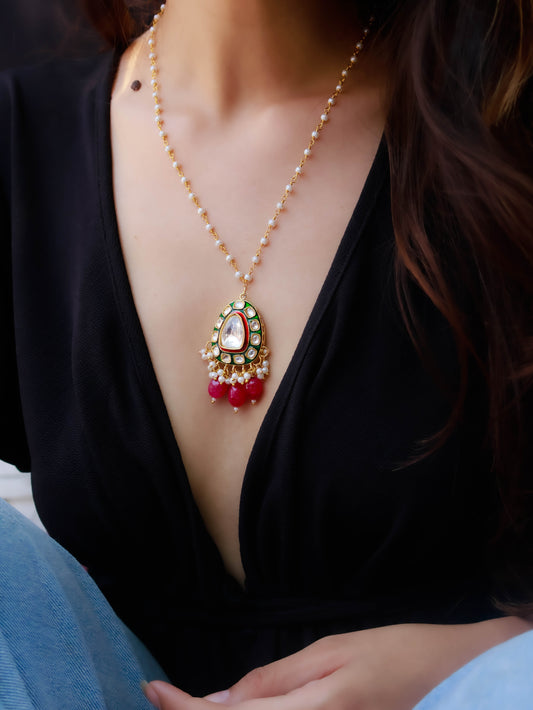 Binal Red Polki Pendant Necklace