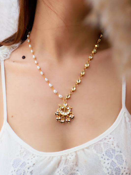 Ida Kundan and Pearl Pendant Necklace
