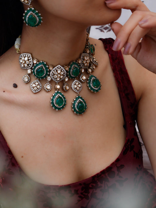 Sama Green Polki Necklace Set