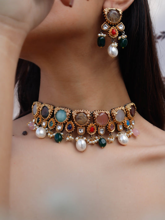 Tarini Multicolored Kundan Choker Necklace Set