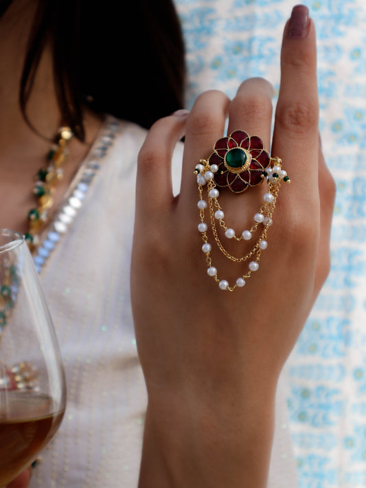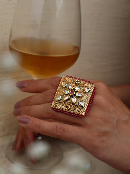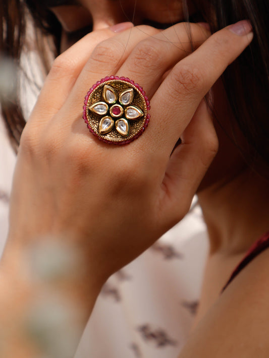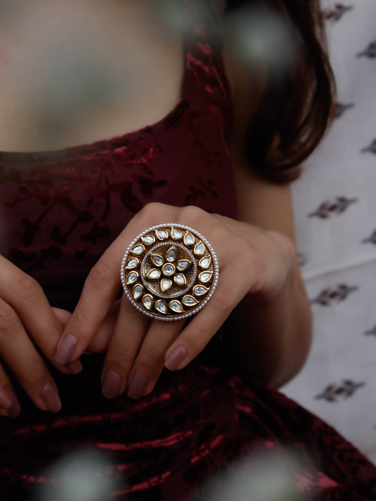 Aarzu Kundan Embossed Ring