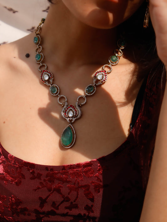 Laila Red-Green Necklace Set