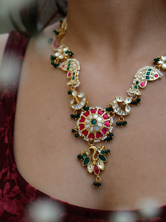 Pisces Red-Green Kundan Necklace