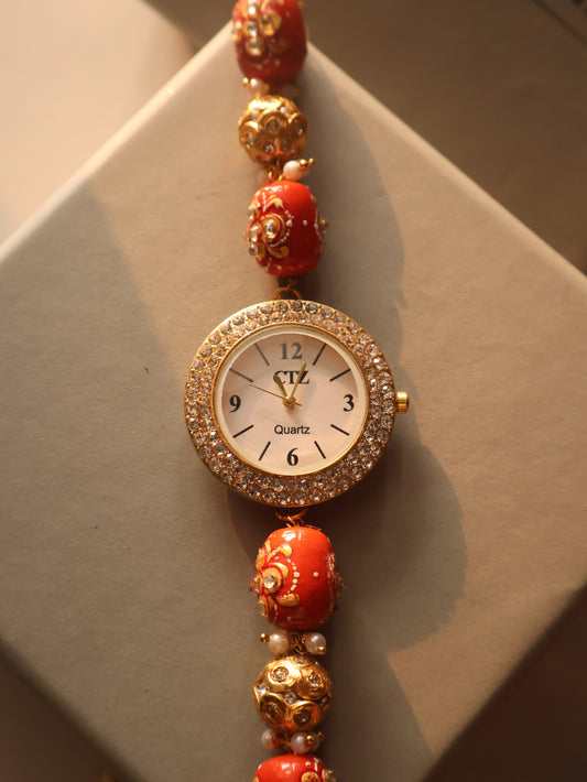 Daneera Coral Meenakari Wrist Watch