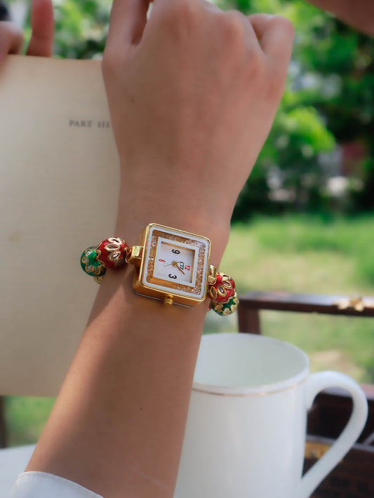 Allegra Red-Green Meenakari Wrist Watch