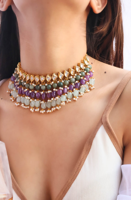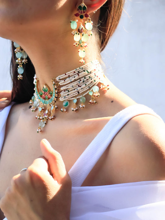 Enora Pink & Mint Kundan Ear Cuff Earrings