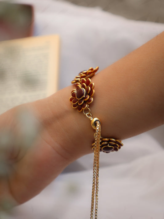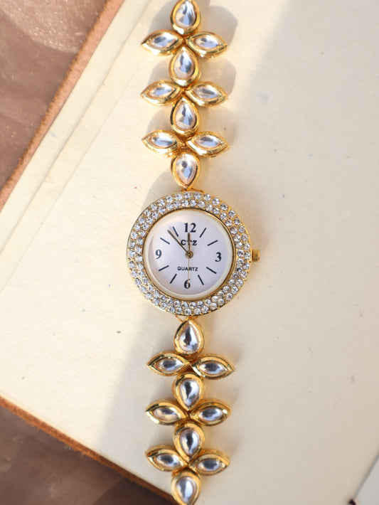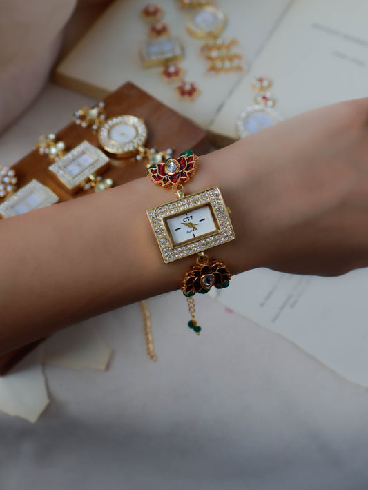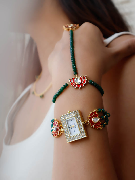 Fransisca Red-Green Lotus Kundan Wrist Watch