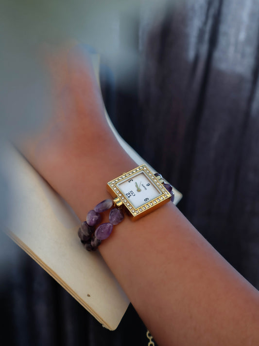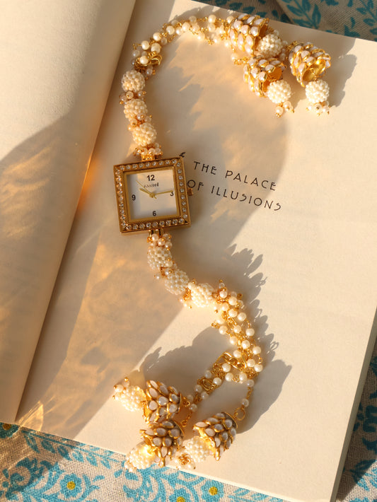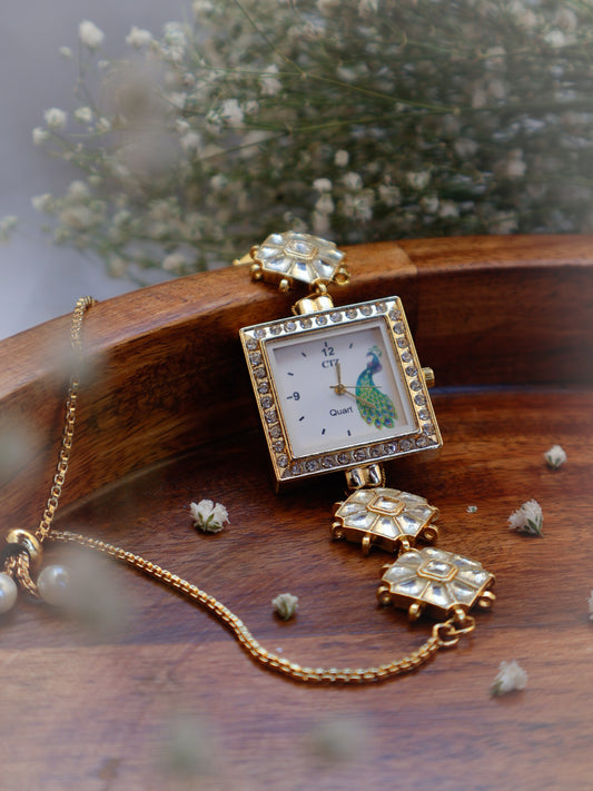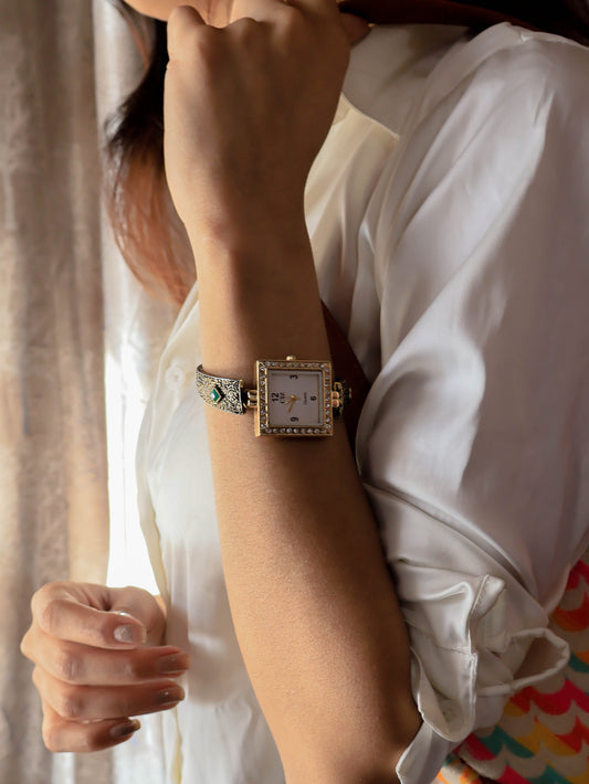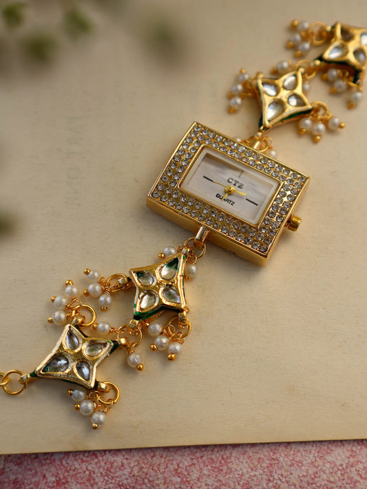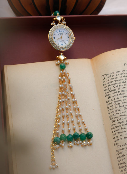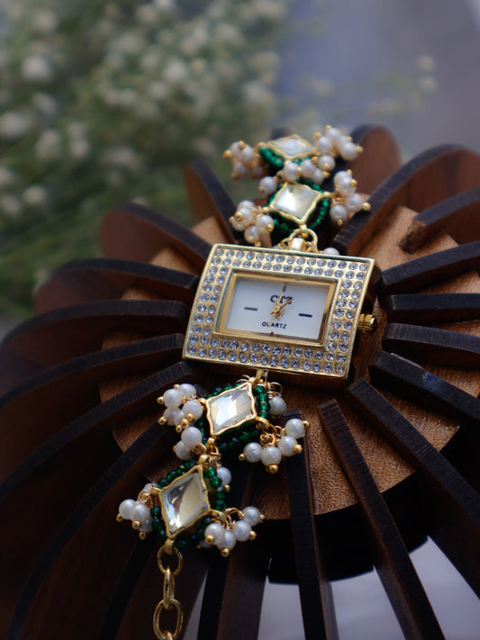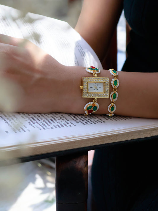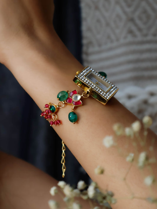Haneen Red-Green Kundan Wrist Watch & Bracelet Set
