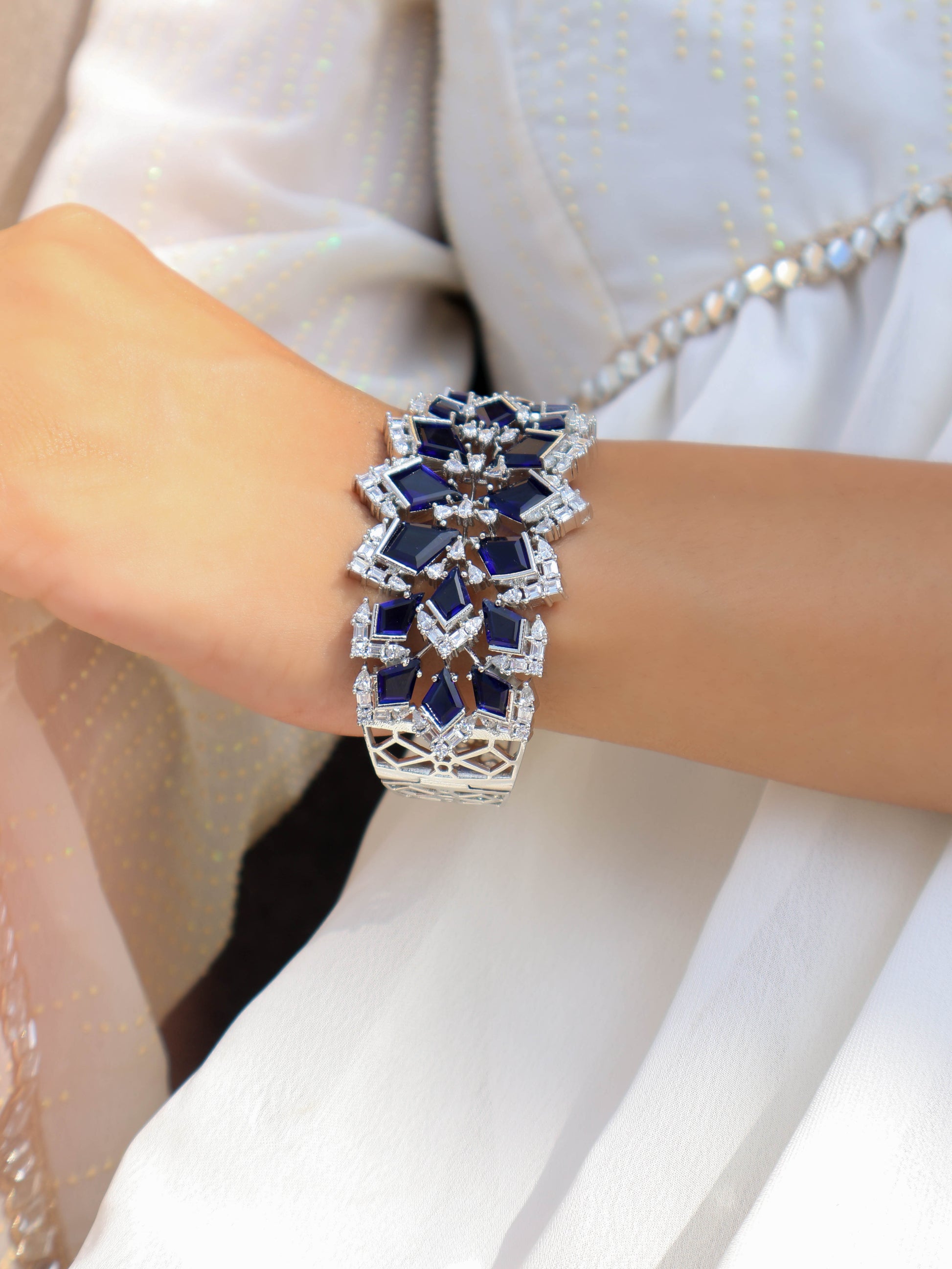 Elevate your look with this stunning blue and silver Victorian bangle, featuring a striking blue hue and an arresting, vintage-inspired design. Rich in detail and elegance, it’s a perfect blend of timeless charm and bold sophistication.