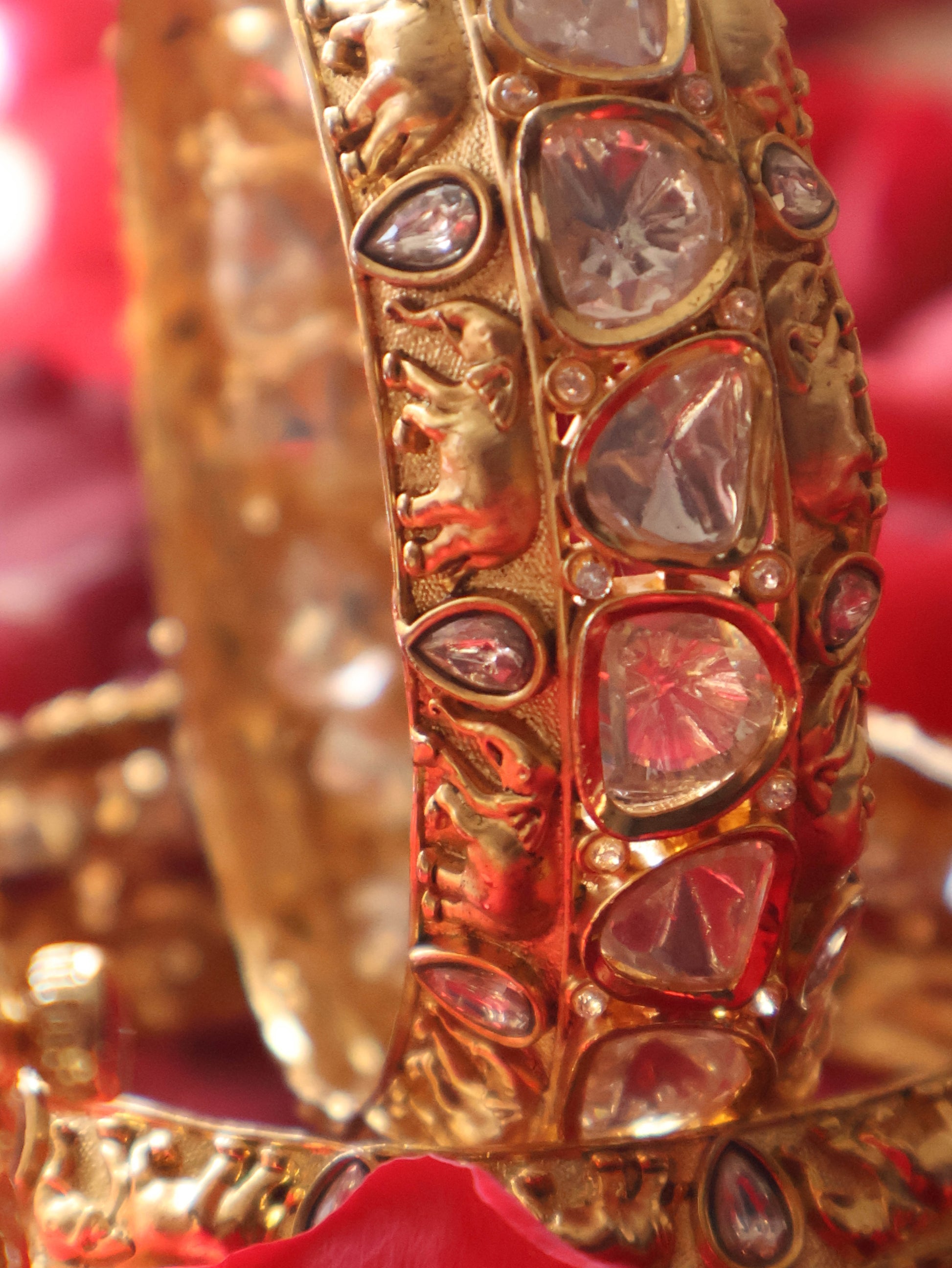 The pretty design features intricately set kundan with beautiful elephant motifs.